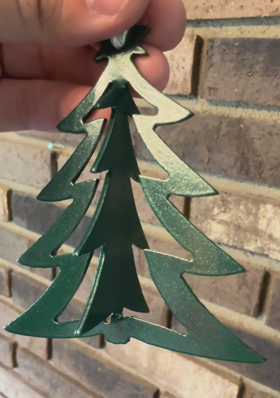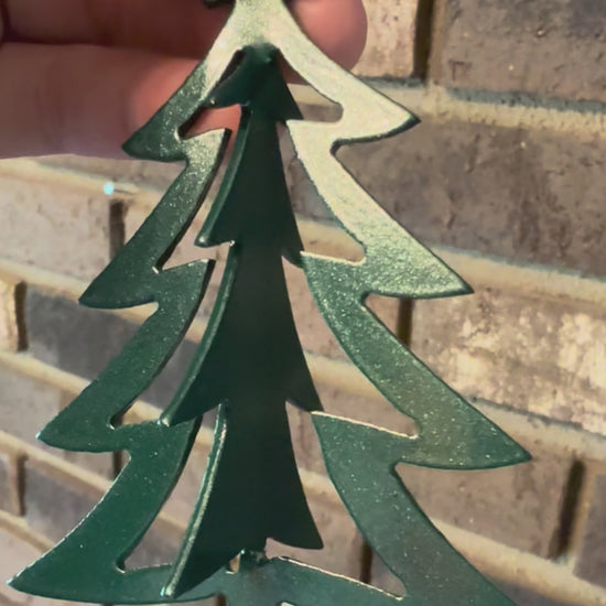 Our 3D tree is one of the first original ornaments we started out with. It can hang or stand up on its own.