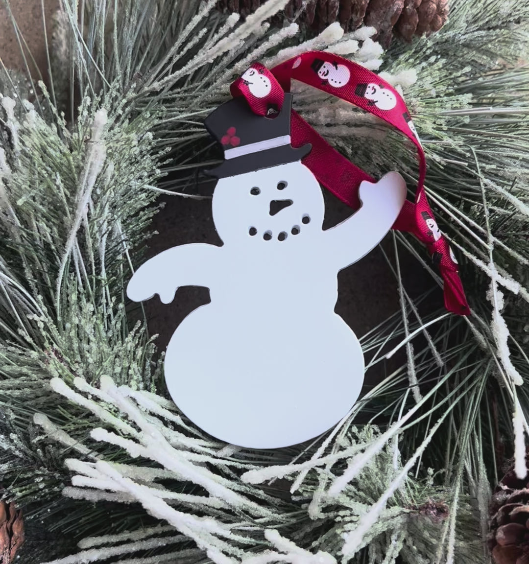 (Powder coated matte white with black paint as hat and buckle or berries with paint marker)
