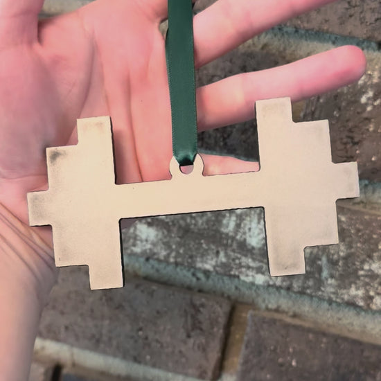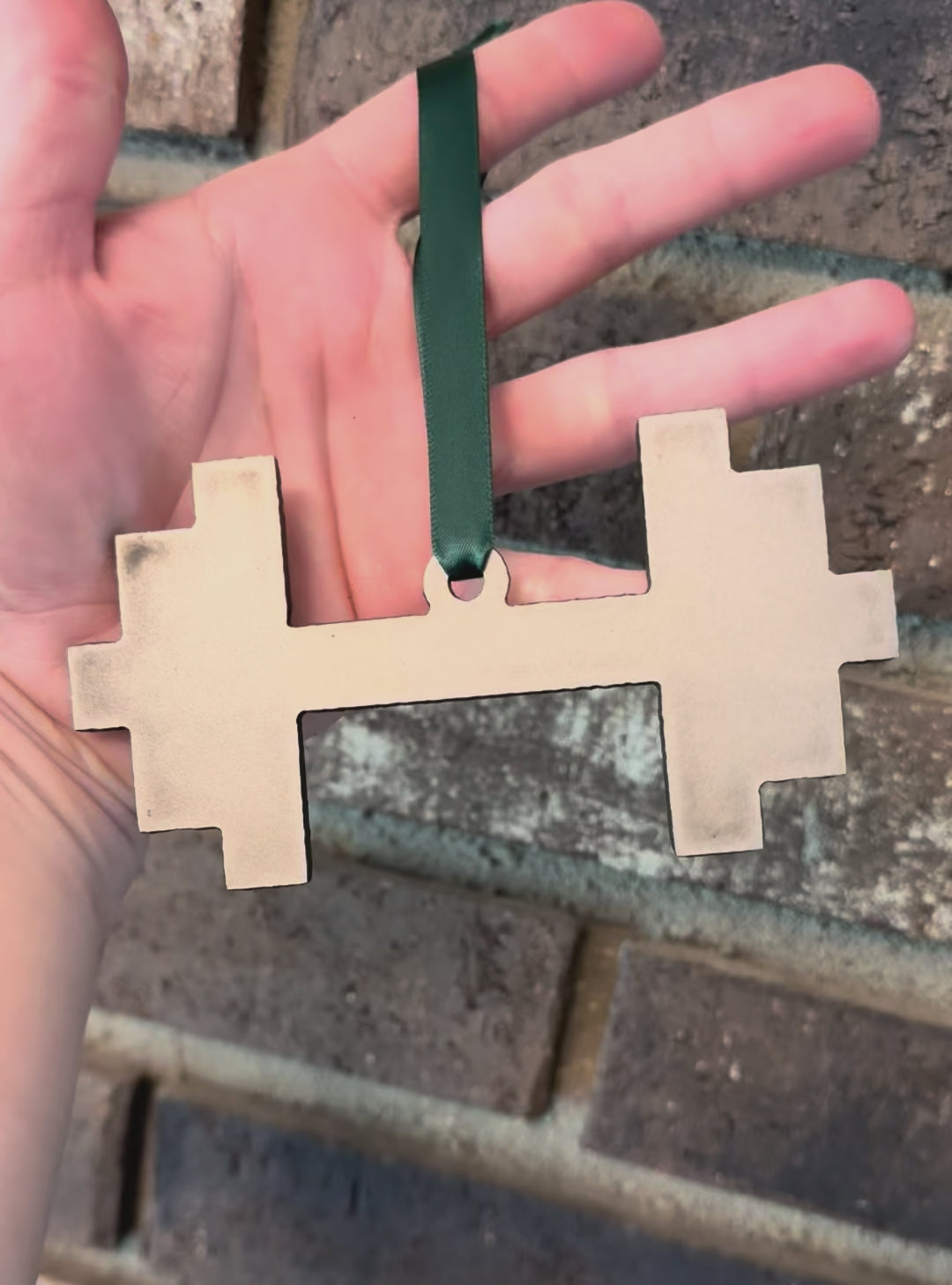 This one is for the gym-goer or weight-lifter! A mini barbell to hang on the tree this year. We kept these a raw steel look by just sanding them lightly and finishing them with a matte clear powder coat to keep that industrial look.
